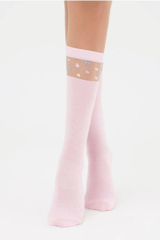 Гольфы розовые с цветным горошком