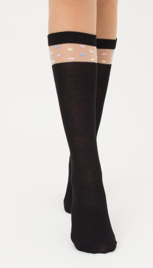 Гольфы чёрные с цветным горошком